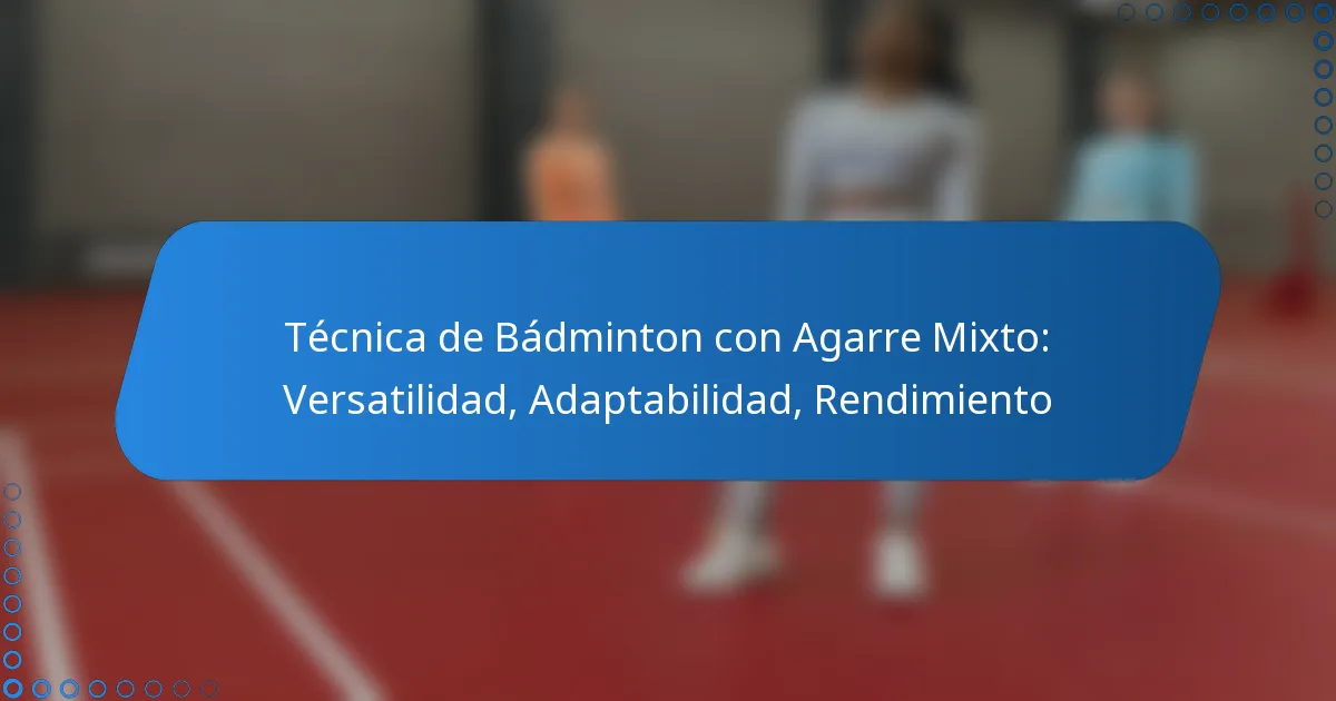 La técnica de agarre mixto en bádminton es un agarre versátil que combina elementos de los agarres de derecha y revés. Esta técnica permite a los jugadores adaptarse rápidamente a varios golpes durante un juego, mejorando el rendimiento y el control en la cancha.